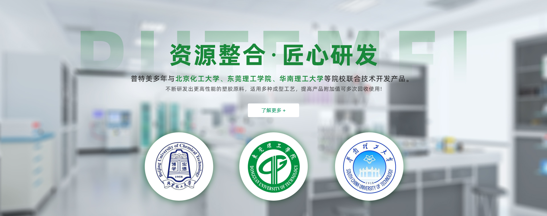普特美堅持創新,多年來與北京化工大學、東莞理工學院、華南理工大學院等院校聯合技術開發產品不斷研發出更高性能的塑膠原料。